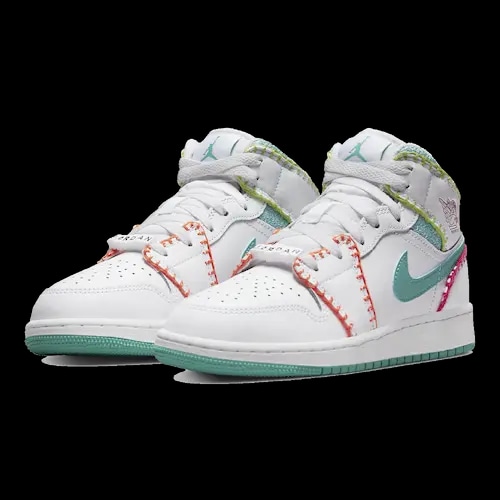 AIR JORDAN 1 MID MULTI KNIT WHITE GREEN GS